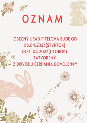 Obecný úrad Pitelová bude od 06.04.2023(štvrtok)
