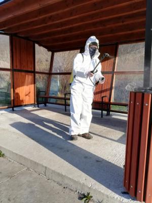 Dnes vykonal zamestnanec obecného úradu dezinfekciu verejných priestranstiev a autobusových zastávok v našej obci.