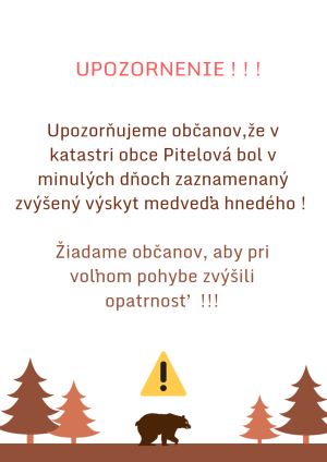 POZOR zvýšený výskyt MEDVEĎA HNEDÉHO v katastri obce Pitelová
