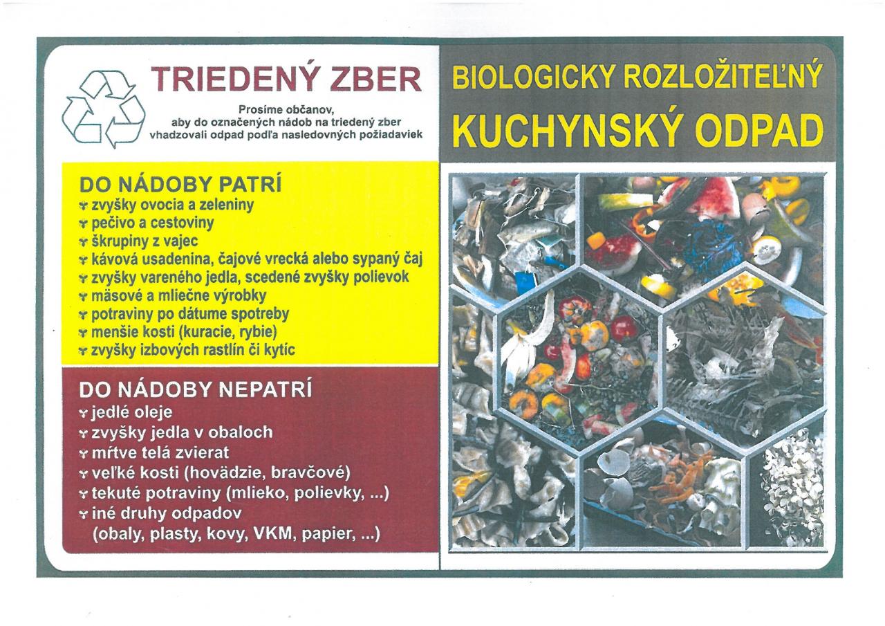 Odporúčame občanom, aby odpad do nádob umiestňovali prostredníctvom vlastného vedierka alebo v originál kompostovateľných vreckách. Zvoz bude zabezpečený v 7-dňovom intervale.