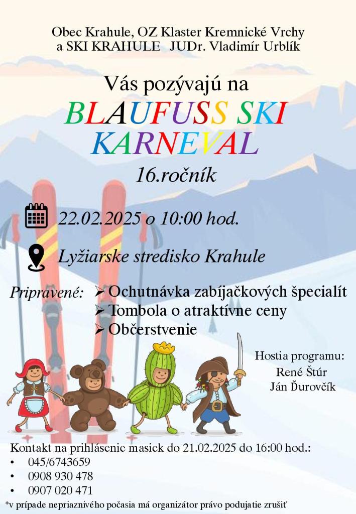 16. ročník Blaufuss Ski Karneval 22.02.2025 o 10,00 hod. Lyžiarske stredisko Krahule.