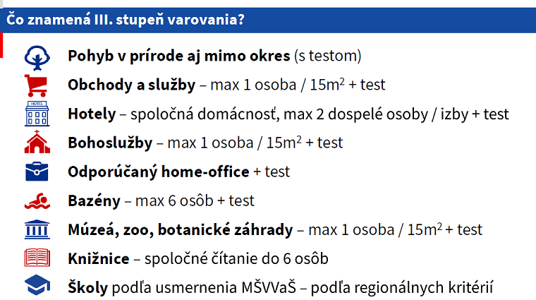 Epidemiologická situácia na Slovensku sa zlepšuje, od 19. apríla bude celá krajina podľa COVID AUTOMATU v III. stupni varovania, teda bordovej farbe, žiadny okres nebude v IV. stupni varovania. Od budúceho týždňa sa uvoľnia viaceré opatrenia, s testom bude možná návšteva obchodov a služieb.