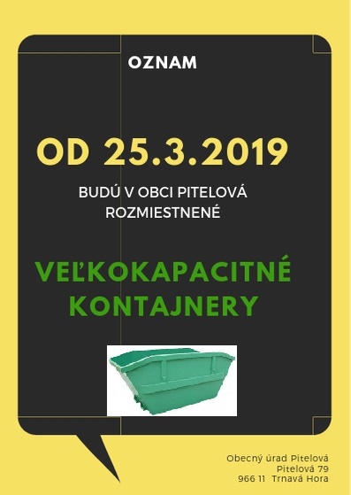 Od 25. marca 2019 budú v obci rozmiestnené veľkokapacitné kontajnery.