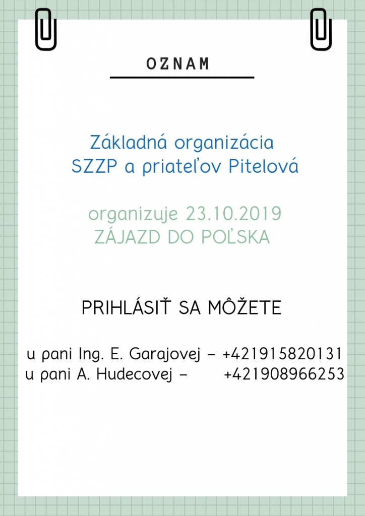 ZO SZZP a priateľov organizuje zájazd do Poľska dňa 23.10.2019