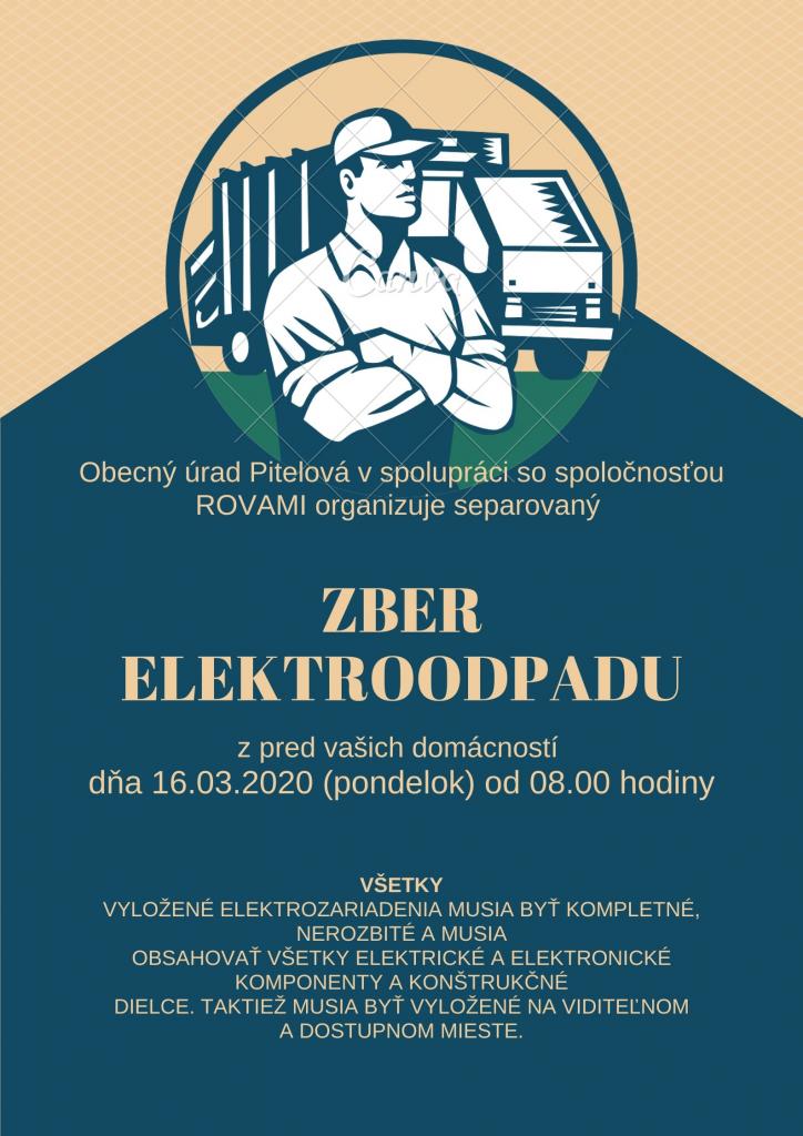 Dňa 16.03.2020 (pondelok) sa od 08.00 hodiny uskutoční v našej obci zber elektroodpadu. Žiadame občanov, aby kompletný a nerozobratý elektroodpad vyložili pred svoje brány.